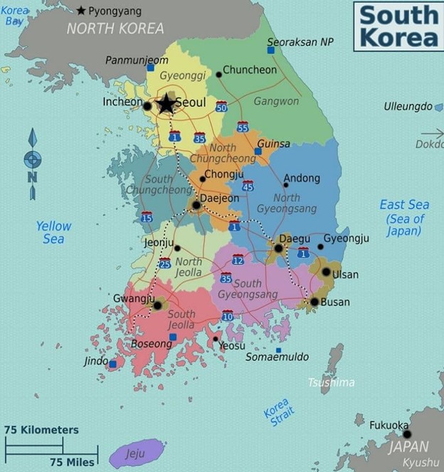 Bản đồ đất nước Hàn Quốc và khát quát chung về đất nước này