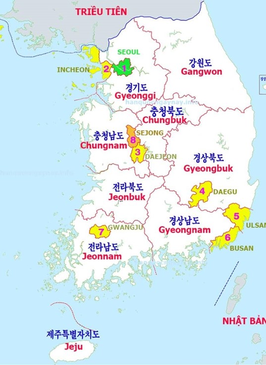 Bản đồ các tỉnh Hàn Quốc